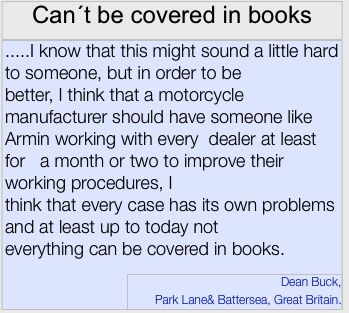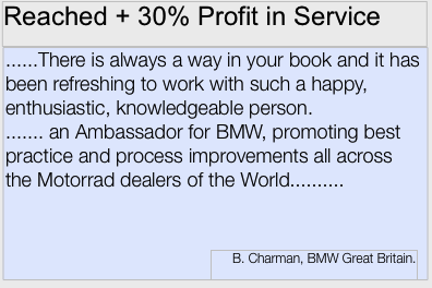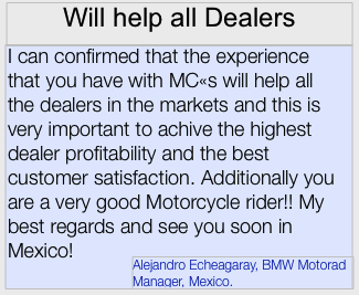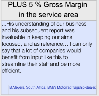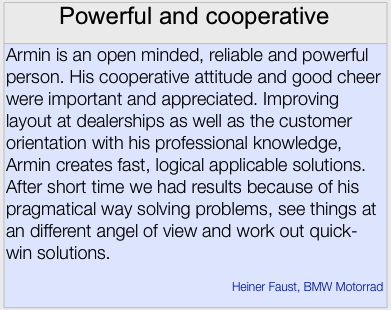 - Author of the BMW Motorrad handbook: “Structure and Procedures for Assignments at BMW Motorrad Importers and Dealers”